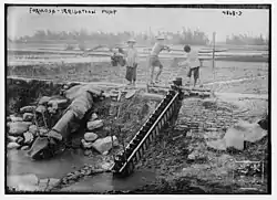 Desde el siglo I en adelante, las bombas de cadena se generalizaron por todo el campo chino. El diseño de paletas cuadradas[13] se usó principalmente para el riego, aunque también encontraron uso en la construcción. El eunuco Zhang Rang (m. 189 d. C.) de la corte Han Oriental ordenó al ingeniero Bi Lan (畢嵐) que construyera una serie de bombas de cadena de paletas cuadradas fuera de la capital Luoyang[14] para dar servicio a los palacios y las viviendas de la ciudad. El agua elevada por estas bombas era transportada por un sistema de tuberías.[14] Ma Jun, el renombrado ingeniero mecánico de la época de los Tres Reinos, también construyó una serie de bombas de cadena para regar los jardines palaciegos del emperador Ming de Wei (226–239).[15]