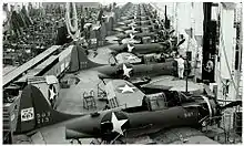 A partir de entonces, los ataques se limitaron principalmente a las incursiones de los kamikazes.[52] Los japoneses estaban ahora a la defensiva. La producción industrial de Japón cayó desde un pico en 1942, mientras que la de los EE. UU. aumentó en una cuarta parte en dos años, desde 1942 hasta 1944. La producción japonesa de bombarderos de todo tipo durante la guerra fue tan solo el 16% de la producción de los Estados Unidos.