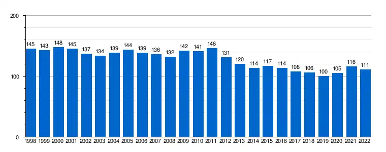 | Gráfica de evolución demográfica de Bordón[6] entre 1998 y 2022 |