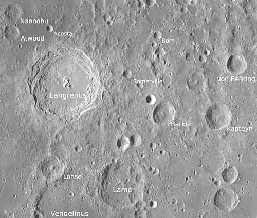 ![]() Fotografía de la misión Lunar Reconnaissance Orbiter. Born, arriba en el centro |