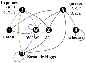 | Espín | 0 (parcialmente confirmado en 125 GeV)[5] (predicho por el modelo estándar) | |