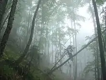 En las cumbres más altas el bosque está compuesto de coníferas, mientras que a menor altitud predominan las frondosas.