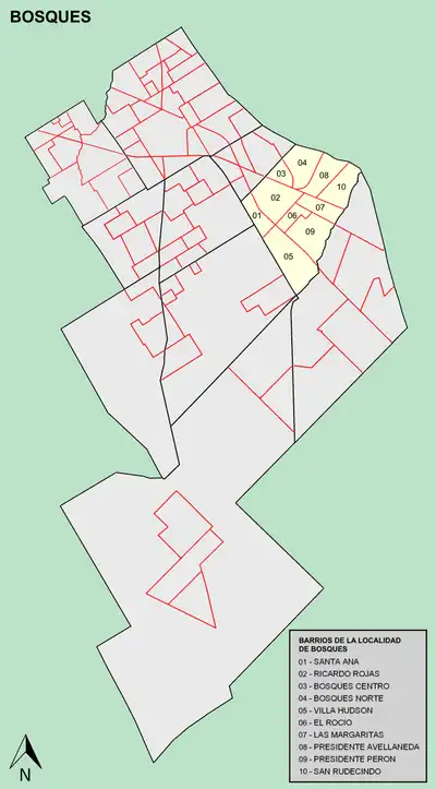 ![]() Bosques Localización de Bosques en Región Metropolitana de Buenos Aires | ||
