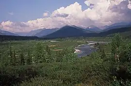 Algunos de los mamíferos comunes en la región son la liebre de montaña, la ardilla voladora, el reno, el armiño, la nutria, el alce, el lobo, el zorro, el glotón, osos, martas, comadrejas y zorros árticos.