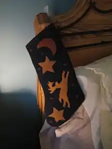 - Dixon, Jeremy (5 de diciembre de 2016). «Top 10 Christmas traditions and their origins» (en inglés). The Telegraph. «Leaving stockings out at Christmas goes back to the legend of St Nicholas. Known as the gift giver, on one occasion he sent bags of gold down a chimney at the home of a poor man who had no dowry for his unmarried daughters. The gold fell into stockings left hanging to dry. St Nicholas was later referred to by the Dutch as Sinterklaas and eventually, by English-speakers, as Santa Claus.»