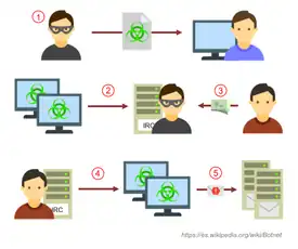 1. El operador de la botnet manda un archivo malicioso a los usuarios.