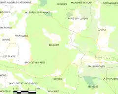 Bouquet es una población y comuna francesa, situada en la región de Languedoc-Rosellón, departamento de Gard, en el distrito de Alès y cantón de Saint-Ambroix.