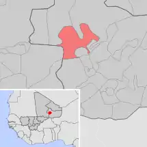 Se encuentra ubicada en el centro-este del país, cerca de la frontera con las regiones de Tombuctú y Kidal.