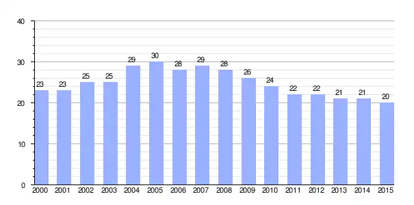 Población de derecho (2000-2015) según los censos de población del INE a 1 de enero de cada año.[7] |