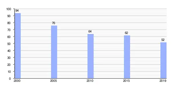 | Gráfica de evolución demográfica de Braña (parroquia) entre 2000 y 2019 |