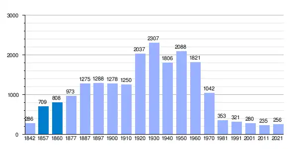 | Gráfica de evolución demográfica de Brañosera[5] entre 1842 y 2021 |