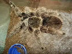 La tarántula ondulada de Honduras (Brachypelma albopilosum, del latín albus, "blanco" y pilum, "pelo") es una especie de araña migalomorfa de la familia Theraphosidae, con un tono oscurecido y unos largos pelos sensitivos.