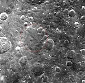 ![]() Imagen oblicua desde el Lunar Orbiter 5, mirando hacia el oeste | ||
