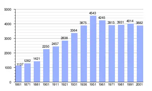 | Gráfica de evolución demográfica de Brancaleone entre 1861 y 2001 |