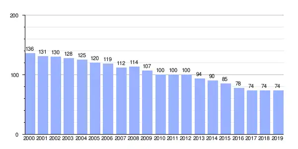| Gráfica de evolución demográfica de Brandoñas entre 2000 y 2019 |