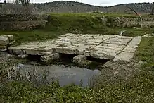 Se accedía al santuario, que cubría una superficie de unos 60 x 80 m, por un puente de piedra sobre el río Erasino: es el único puente que permanece de la Grecia clásica.[12]