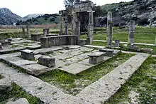 Además, un decreto ateniense de fines del siglo IV a. C. o principios del siglo III a. C. menciona los edificios del santuario entre los que se citan, entre otros, un templo, un partenón, un gimnasio, un amphipoleion (vivienda de los sacerdotes), una palestra y establos. La identificación de algunos de esos edificios con las estructuras descubiertas es objeto de debate, pero seguramente algunos de ellos permanecen sin descubrir.[20][21]