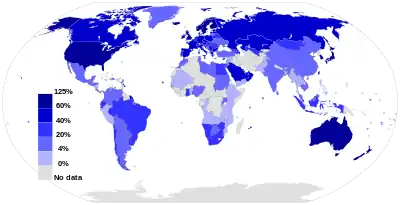 La brecha digital global es un caso especial de la brecha digital centrada en el hecho de que "Internet se ha desarrollado de forma desigual en todo el mundo" [11] : 681 . Esto provoca que algunos países queden rezagados en tecnología, educación, trabajo, democracia y turismo. El concepto de brecha digital fue popularizado originalmente en relación con la disparidad en el acceso a Internet entre las zonas rurales y urbanas de Estados Unidos. Esta disparidad aplicada a escala internacional es la brecha digital global.