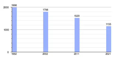 Hasta 2021 la población era de 1155 habitantes,[1] con una densidad de población de 22,58 habitantes por kilómetro cuadrado.[1]