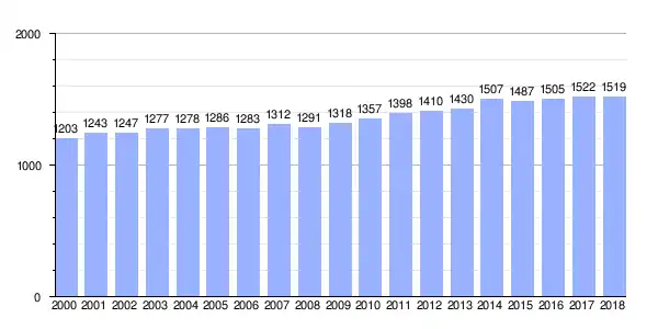 | Gráfica de evolución demográfica de Brión entre 2000 y 2018 |