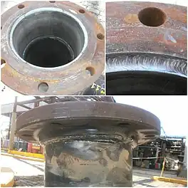 El extremo de la brida se suelda a tope con la tubería, de la misma manera que se sueldan dos extremos de tuberías. Esta característica proporciona un conducto de área prácticamente constante, sin posibilidades de producir turbulencias en los fluidos que circulan.