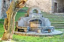 - Crucero y templete: Columna de crucero con capitel decorado con angelotes de mediados del XVI y junto a él un templete en que se empotra una Piedad del XVI, situados a la salida de la localidad en el camino a Anguiano.[12]