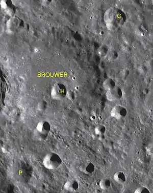 Por convención estos elementos son identificados en los mapas lunares poniendo la letra en el lado del punto medio del cráter que está más cerca de Brouwer.