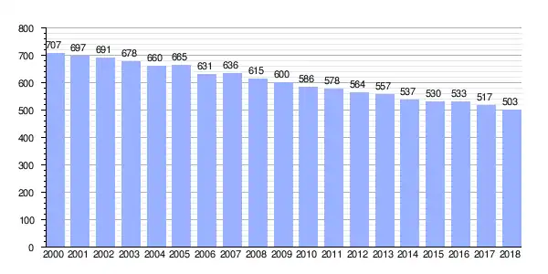 | Gráfica de evolución demográfica de Buño[2] entre 2000 y 2018 |