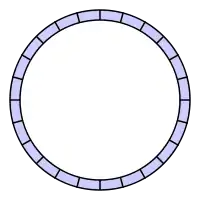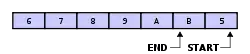 Un anillo mostrando, conceptualmente, un buffer circular. El esquema muestra claramente que el buffer no tiene final, y se puede mover alrededor de todo el buffer. Sin embargo, como la memoria nunca puede ser creada físicamente como un anillo, se usa generalmente una representación lineal.