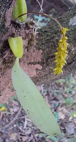 Bulbophyllum: nombre genérico que se refiere a la forma de las hojas que es bulbosa.