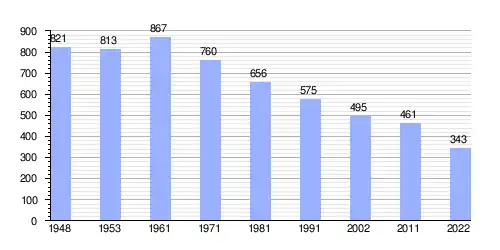 | Gráfica de evolución demográfica de Bunar entre 1948 y 2022 |