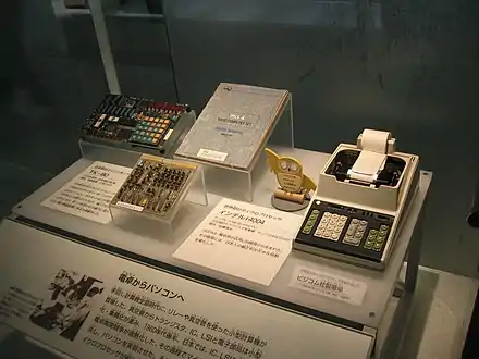 La Nippon Calculating Machine Corp fue incorporada en 1945 y cambió su nombre en 1967 a Business Computer Corporation, Busicom. Debido a la recesión en Japón en 1974, Busicom fue la primera gran compañía japonesa en la industria de la calculadora que fracasó. Originalmente, hicieron calculadoras mecánicas de tipo Odhner y luego pasaron a las calculadoras electrónicas siempre con el estado de los diseños de arte. Ellos crearon la primera calculadora con un microprocesador en la parte superior de la línea de máquinas[5] y fueron los primeros en crear calculadoras con un chip de calculadora, el MK6010 Mostek, para su línea de máquinas de bajo costo.