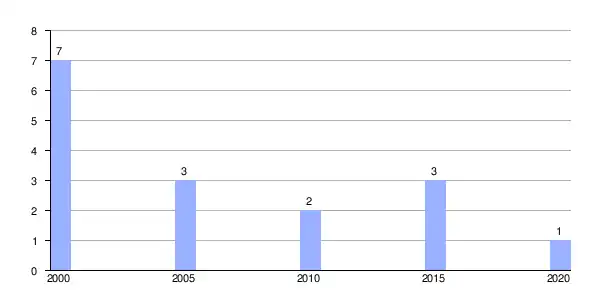 | Gráfica de evolución demográfica de Busto entre 2000 y 2020 |