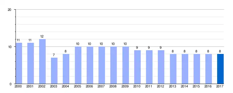 | Gráfica de evolución demográfica de Busto de Treviño entre 2000 y 2017 |