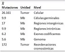Se encontró una media de 2952 reordenamientos cromosómicos, dentro de los cuales el 20 % consistían en translocaciones intercromosómicas y el 55 % eran fusiones aberrantes. Sin embargo, no se encontró correlación alguna entre la tasa de mutaciones y reordenamientos.