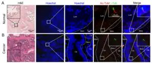 En el cáncer primario y las lesiones de invasión perineural existió una pérdida estadísticamente significativa de cilios primarios.[7]