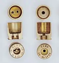 La mayor parte de la munición comercial lleva cápsulas fulminantes tipo Boxer, mientras que la militar suele llevarlas tipo Berdan.[9]