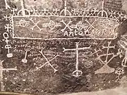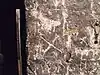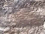Esta inscripción aparece debajo del altar del muro oeste de la sala intermedia, y reza: