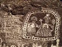 La sala intermedia es la que conserva un mayor número de grabados y en mejor estado de conservación se hallan, ubicados en sus cuatro paredes hasta una altura de dos metros.