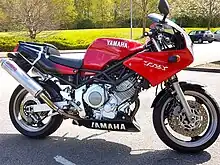 - La motocicleta Yamaha TRX850 tiene un motor bicilíndrico de cárter seco montado a 270 grados. Su depósito de aceite no está separado del motor, sino que forma parte de él, y está ubicado encima de la caja de cambios. Este diseño elimina las tuberías de aceite externas, lo que permite una extracción del motor más sencilla y facilita un calentamiento del aceite más rápido.
