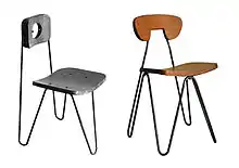 Con la asistencia del carpintero francés Talvá en Mendoza, proyecta la silla de tres patas y respaldo móvil, que dará lugar a la de cuatro apoyos, de mayor estabilidad. Esta última versión resulta más escultórica y funcional, y aprovecha la elasticidad del acero como cualidad ergonómica para el apoyo de la espalda.
