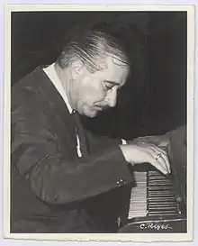![]() César Zagnoli, en el marco de una actuación brindada en los salones de la Sociedad Rural de Durazno el 22 de julio de 1965. | ||
