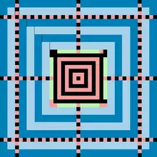 Del mismo modo, las filas y columnas adicionales de la cuadrícula de referencia se insertan ± 32 píxeles desde el centro, haciendo un símbolo de 12 capas de 67 × 67 píxeles. El patrón continúa indefinidamente hacia afuera, con bloques de 15 píxeles de datos separados por filas y columnas de la cuadrícula de referencia.