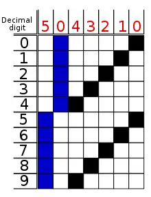 Valor Bits p-5-421 0 1-0-000 1 0-0-001 2 0-0-010 3 1-0-011 4 0-0-100 5 0-1-000 6 1-1-001 7 1-1-010 8 0-1-011 9 1-1-100