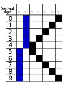 Valor Bits p-5-qqq 0 1-0-000 1 0-0-001 2 1-0-011 3 0-0-111 4 1-0-110 5 0-1-000 6 1-1-001 7 0-1-011 8 1-1-111 9 0-1-110