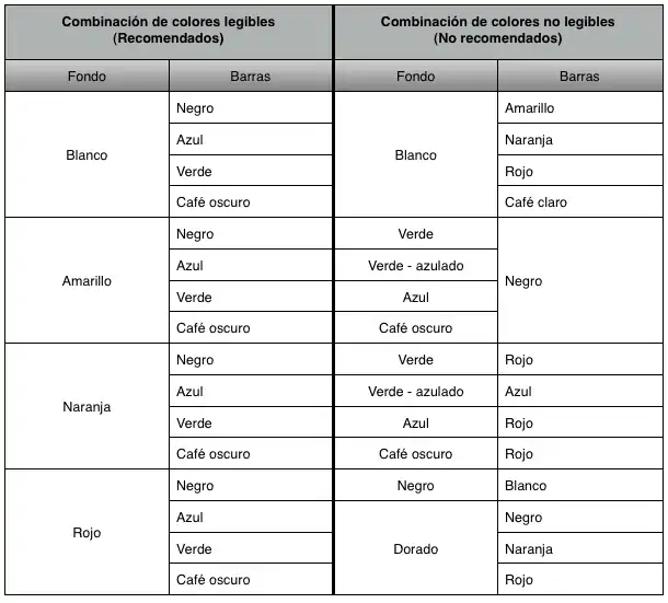 Para facilitar la lectura del código de barras, se aplica un contraste alto entre los componentes oscuros y claros del código.
