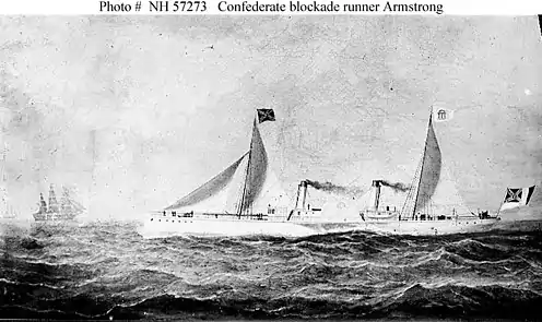 El Armstrong, un buque de vapor de ruedas laterales de hierro de 70 metros de largo, fue construido en Glasgow, Escocia, en 1864. Propiedad de la empresa Crenshaw and Company, dirigió con éxito el bloqueo federal de los puertos atlánticos de los Estados Confederados de América cinco veces durante los últimos cuatro meses de 1864. El 4 de diciembre de ese año, mientras intentaba salir de Wilmington, Carolina del Norte, fue capturada por los barcos de la Armada estadounidense USS R. R. Cuyler, USS Gettysburg, USS Mackinaw y USS Montgomery.[1]