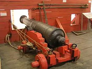![]() Cañón de 12 libras en la cubierta de la fragata Hermione | ||