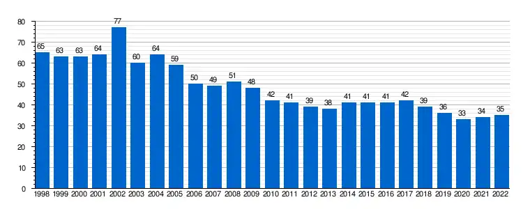 | Gráfica de evolución demográfica de Cañada de Benatanduz[5] entre 1998 y 2022 |