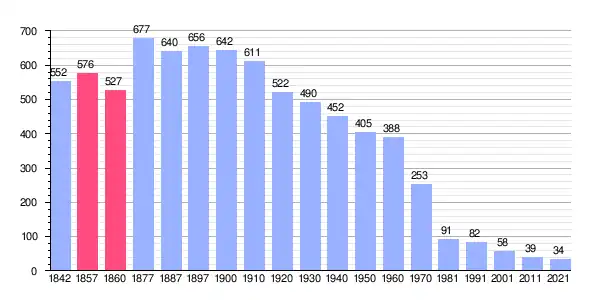 | Gráfica de evolución demográfica de Cañada de Benatanduz[3][4] entre 1842 y 2021 |